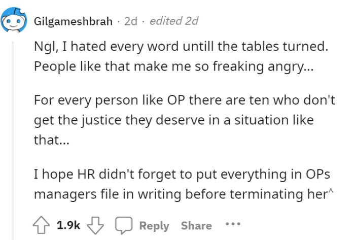 "Ngl, I hated every word untill the tables turned. People like that make me so freaking angry"