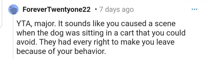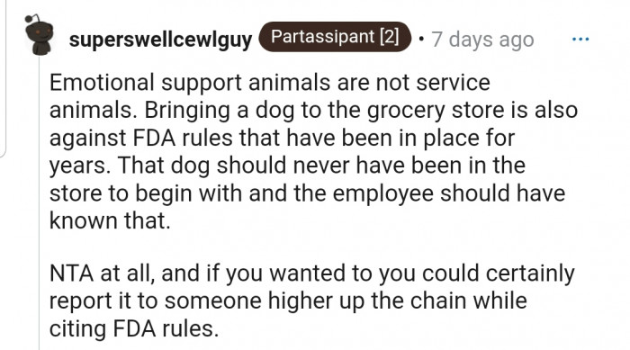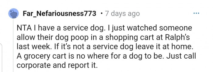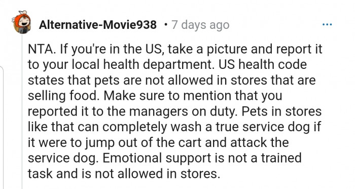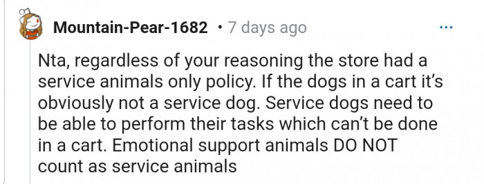 Others believe OP is NTA because the store has a clear rule that states only service dogs are allowed in, but the young girl flouted that rule.
