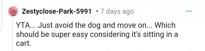"YTA... Just avoid the dog and move on."