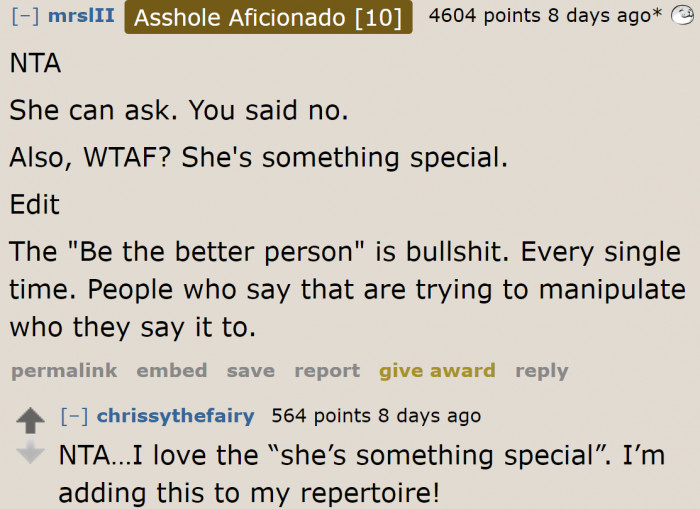 That's why a user had to turn to the "Am I The A**hole?" (AITA) community to ask if he's the one who's unreasonable for not doing what his future sister-in-law wishes.