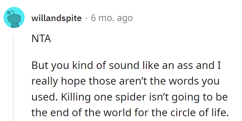 Spiders and relationships—handle both with care. YTA for a web of trouble!