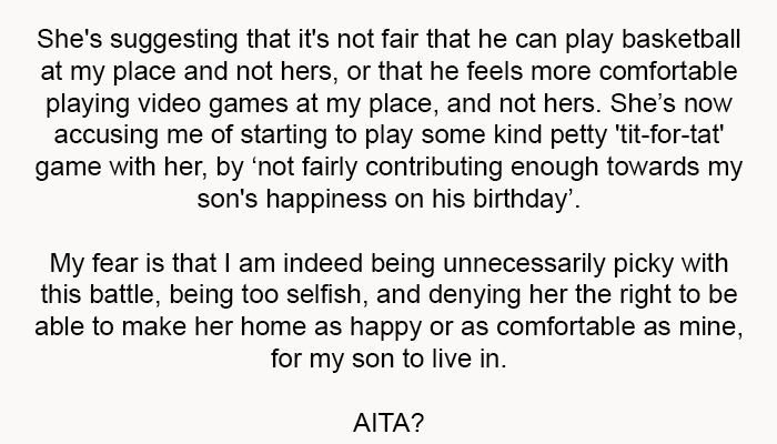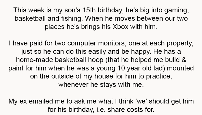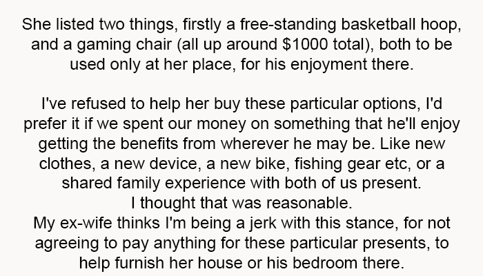 AITA For Refusing To Fund Birthday Gifts That Only Benefit My Son At My Ex-Wife's House