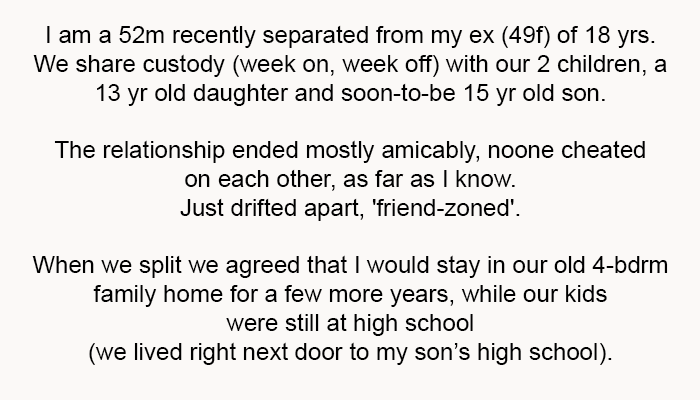 A father, recently separated from his wife of 18 years, finds himself at a crossroads regarding his son's birthday gifts—a decision that stirs up more than just family memories but also the complexities of co-parenting after a split. The couple, who parted mostly amicably and now share custody of their two children, faces a new challenge as their son's 15th birthday approaches.