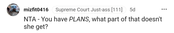 It's crucial to recognize that prioritizing personal needs is not inherently selfish; in fact, it's often necessary for one's mental health. Studies suggest that individuals who fail to establish boundaries can experience heightened anxiety and stress, leading to burnout and resentment in family relationships. By asserting her right to make personal choices, the Redditor may be taking a vital step toward self-care and healthier interactions.