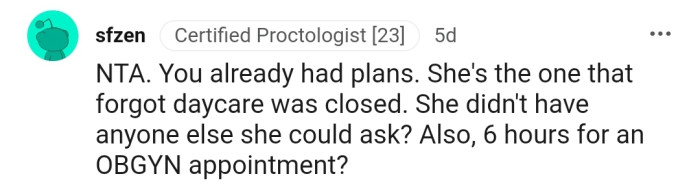 Reddit.comOP's sister asked if he could babysit his nephew for a few hours. Interestingly, he declined due to some personal plans scheduled later in the day.