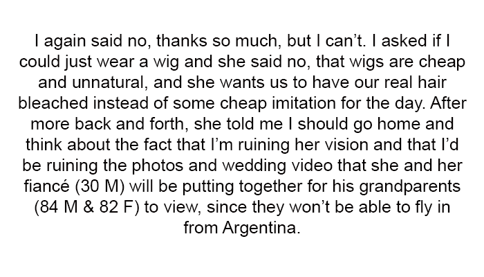 AITA For Refusing To Bleach My Hair For A Friend's Wedding