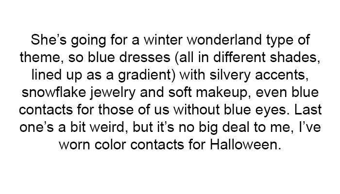 “Elsa themed” is sending me. That makes a lot of sense, though; she did really enjoy Frozen when it came out. Maybe that’s why she’s wanting to do a winter theme so badly.