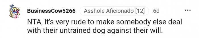 "It's very rude to make somebody else deal with their untrained dog against their will."