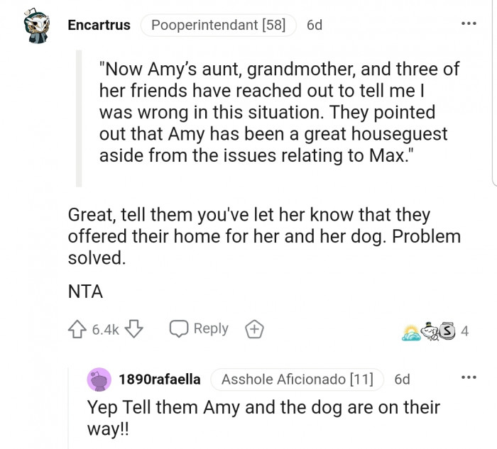 SickOfAmysDog-aita / reddit.comThe story continues...