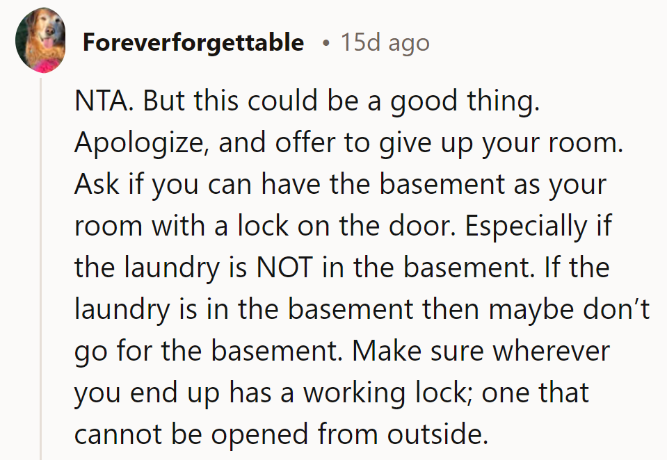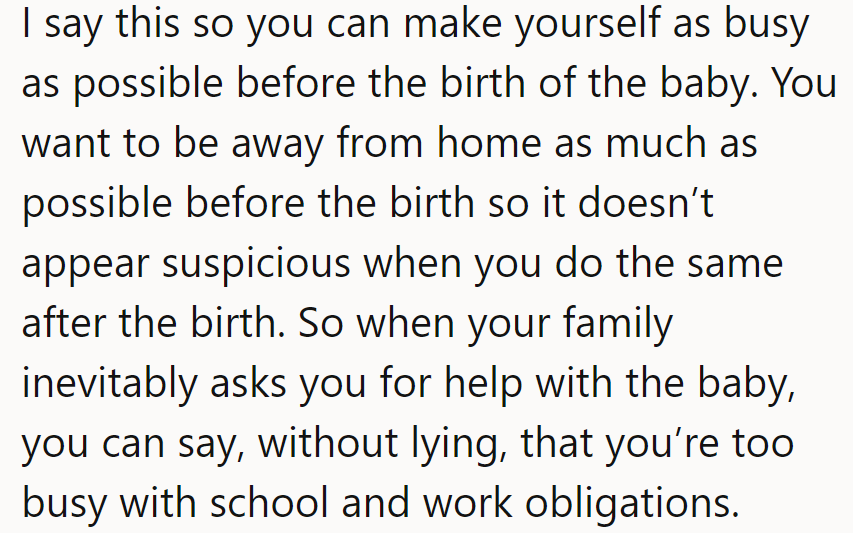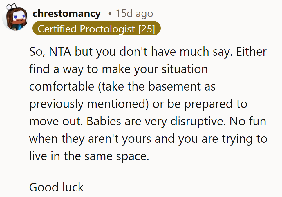 So, navigating the choppy waters of family dynamics, one might find themselves between a rock and a comfy place. While offering up your sanctuary for a pregnant stepsister is a noble act, remember, it's only heroic if your heart's in it—otherwise, you're just a martyr with less closet space.