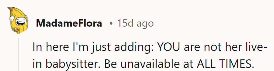 Dodge babysitting duty like a pro: master the art of 'Elsewhere to Be.' After all, 'A Lot' is always the answer.