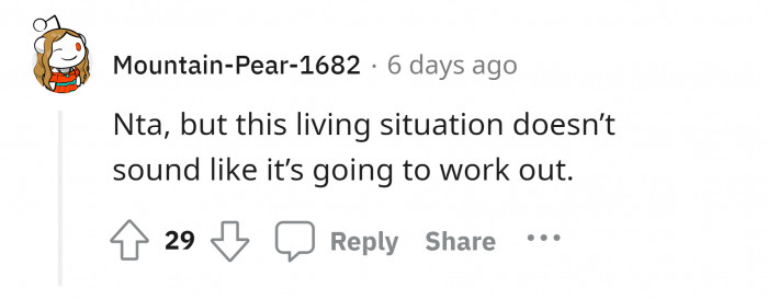 "This living situation doesn't sound like it's going to work out."