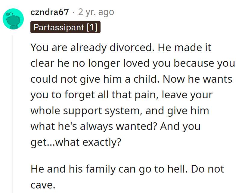 RedditTried for 3 years for a baby, but infertility strained their marriage. Despite suggesting fostering and adoption, Jon wasn't interested.