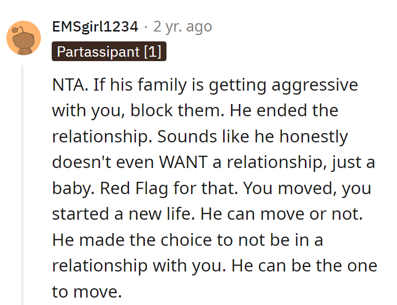 The Reddit story presents a real-life scenario where a woman, post-divorce, faces unexpected turns in her life, including a pregnancy. Her decisions regarding relocation and co-parenting are influenced by her circumstances, including her support system and personal needs.