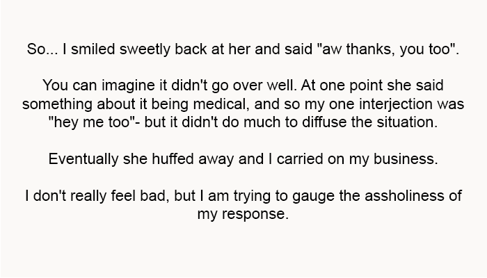 This story raises important questions about the balance between defending personal boundaries and practicing kindness. Was the pregnant woman's snarky reply warranted, or did it cross the line into rudeness? We want to hear your thoughts on this matter.