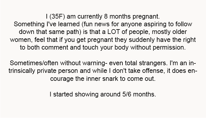 A Reddit post by a 35-year-old pregnant woman has ignited a lively debate about personal boundaries and body shaming. The woman, who is eight months pregnant, shared her frustration with the frequent and unsolicited comments and touches from strangers, especially older women.
