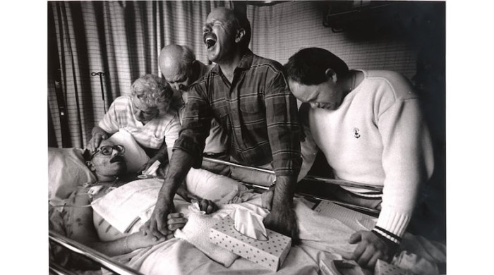 In 1989, a poignant photograph captured the final moments of 33-year-old Tom Fox, a victim of the AIDS epidemic, surrounded by his loving family at Sacred Heart Hospital in Eugene, Oregon. The image, taken by photographer Michael Schwarz, serves as a powerful reminder of the human face of AIDS and the devastating impact it had on individuals and their loved ones during the height of the crisis.