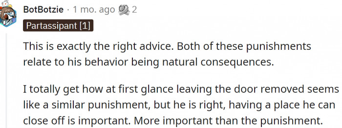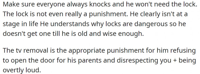 "The TV removal is the appropriate punishment for him refusing to open the door"