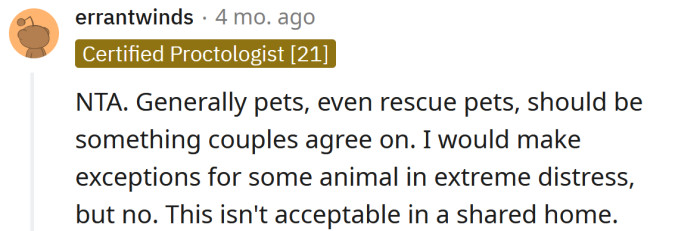 The Redditor says his relationship with his wife is great otherwise, but he's fed up with having to share his home with so many furry creatures. Keep scrolling to see how people reacted.