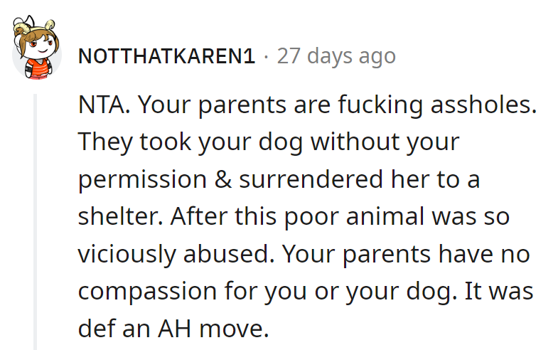 "Your parents have no compassion for you or your dog."