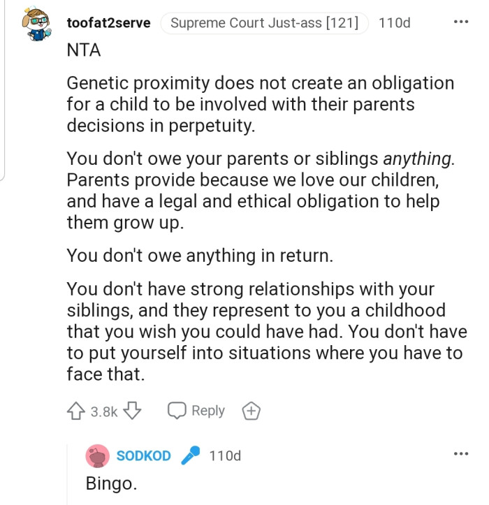 "NTA...You Don't Owe Your Parents or Siblings Anything."