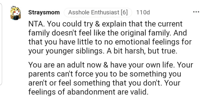 Reddit.comOP Has Made It Clear to Her Mom That She Doesn't Want to Be Anywhere Near Her Younger Siblings