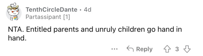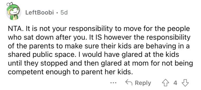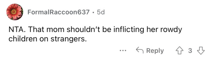 "That mom shouldn't be inflicting her rowdy children on strangers."