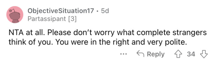 But as they left, the mother made a point of telling the couple that they should have just moved out of the way in the first place, as she suggested. Keep scrolling to see how people reacted.