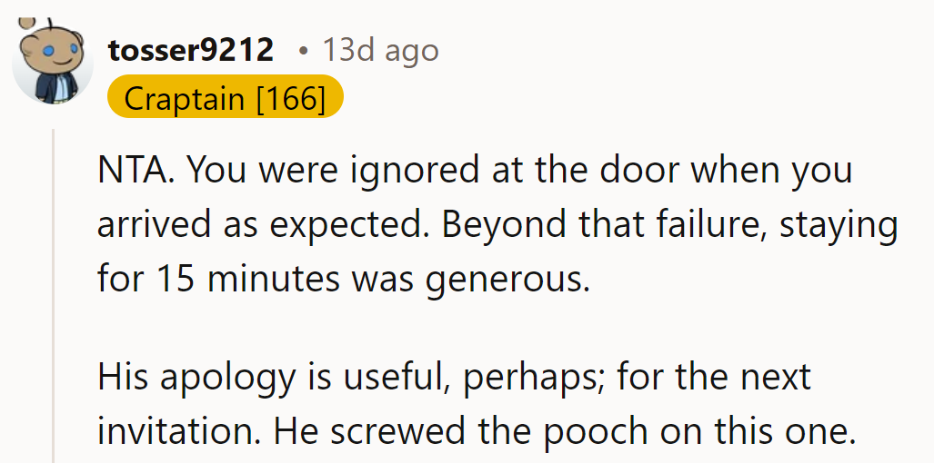 "Staying for 15 minutes was generous."