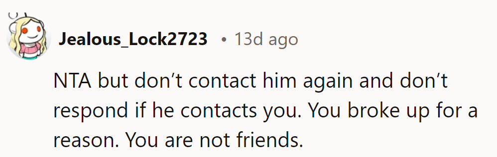 This scenario raises questions about boundaries, respect, and the complexities of navigating relationships post-breakup.