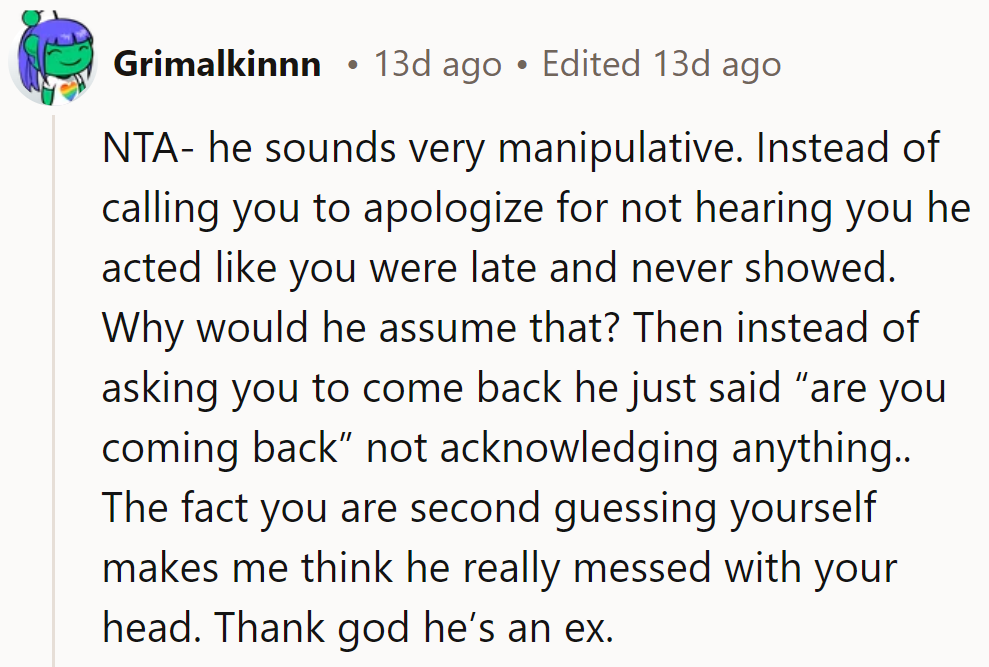 "The fact that you are second-guessing yourself makes me think he really messed with your head."