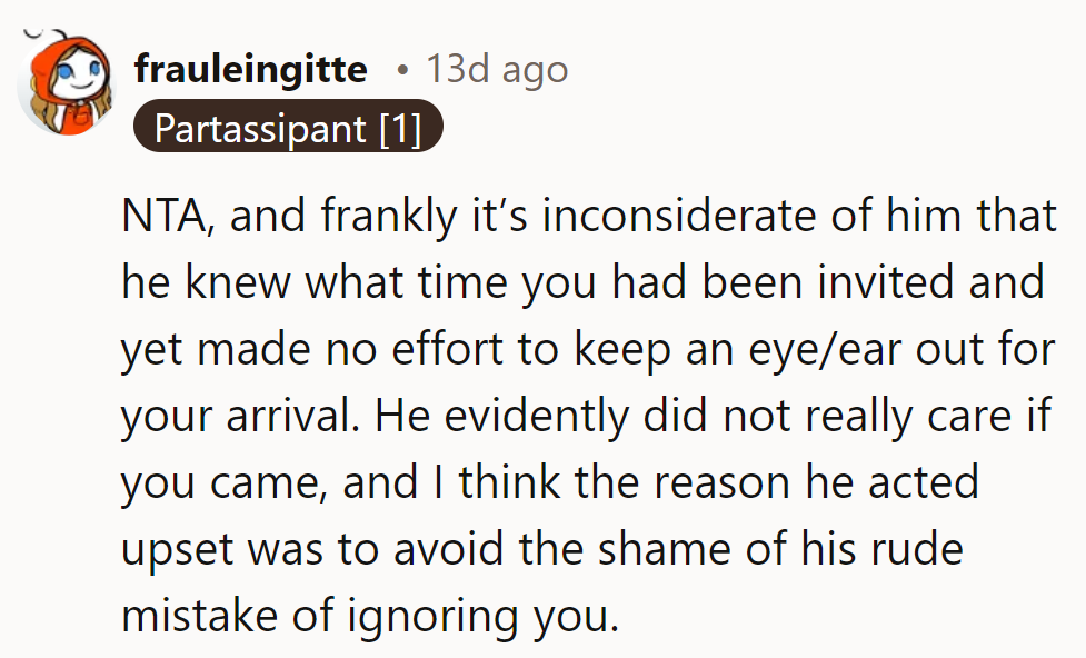 "I think the reason he acted upset was to avoid the shame of his rude mistake of ignoring you."