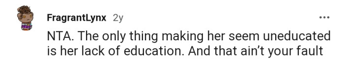 OP couldn't help but retaliate, pointing out the irony of her step-sister's linguistic shortcomings. Their stepmother, infuriated by the verbal clash, reprimanded OP upon their return home.