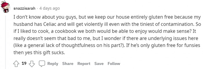 "If he’s only gluten-free for funsies, then yes, this gift sucks"