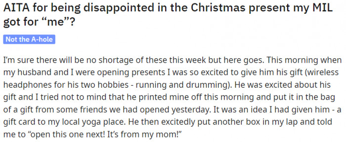 "AITA for being disappointed in the Christmas present my MIL got for me?"