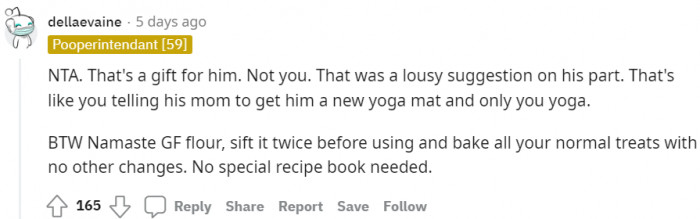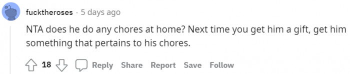 She explained that they had a good and long conversation about the incident and set better expectations for the future. Gifts can't always be perfect, but maybe this one wasn't the most appropriate—and her husband has accepted his mistake.