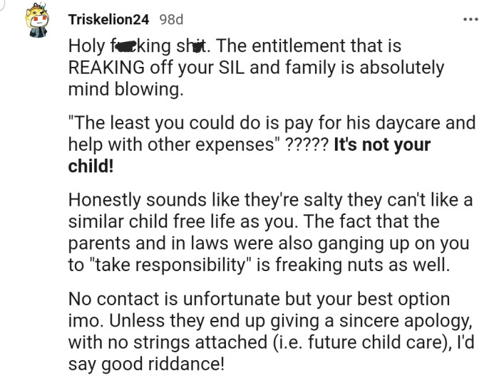 "The entitlement that is REAKING off your sister-in-law and family is absolutely mind-blowing."