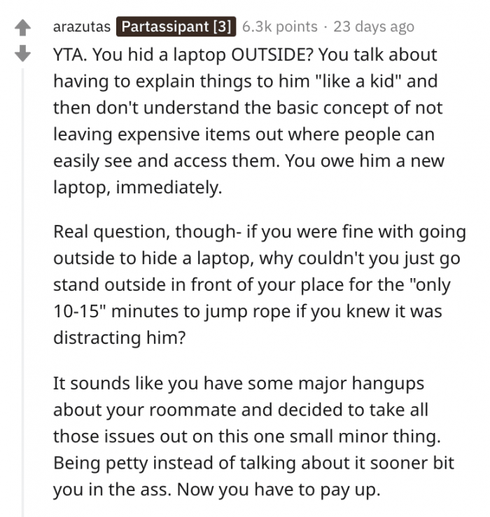 Guy Asks Reddit If He's an A-Hole for Hiding His Roommate's Laptop Outside, Which Led to Its Theft