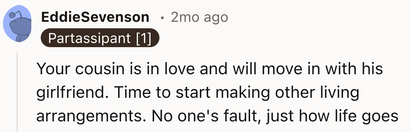 On one hand, he has every right to assert his boundaries and reclaim his personal space. On the other hand, he must navigate the delicate balance of maintaining harmony within the household and preserving his relationship with his cousin.