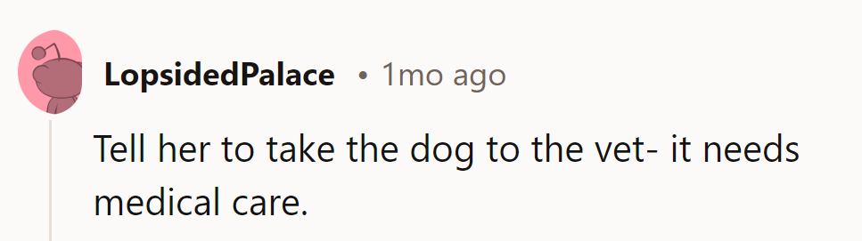 Priority: Ensure the dog's care; a happier pup means a happier household in time.