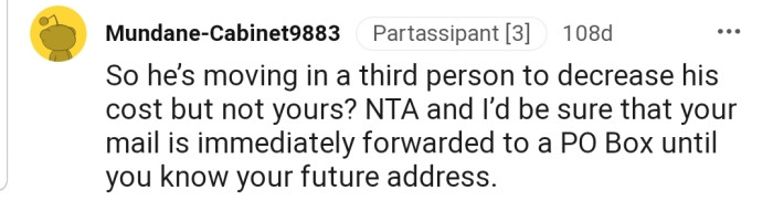 This unexpected turn of events left her feeling disregarded and excluded from an important decision that would directly impact their living arrangement.