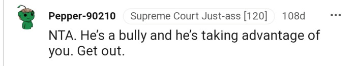 "He’s a bully, and he’s taking advantage of you. Get out!"