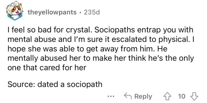 The Redditor told Ben about her plans and that he could still be her roommate. However, neither of them breathed a word about their plans for Crystal.