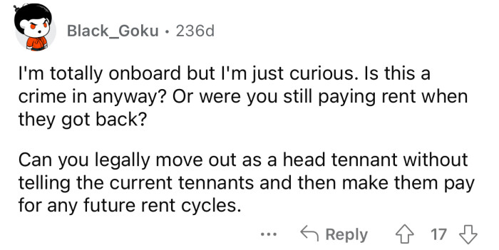 When the pair returned, the OP informed them that all the utilities had been switched to the new house since they were in her name and that she and Ben had paid their share of the rent to the landlady. The OP and Ben promptly left and never saw Crystal and Pablo again.