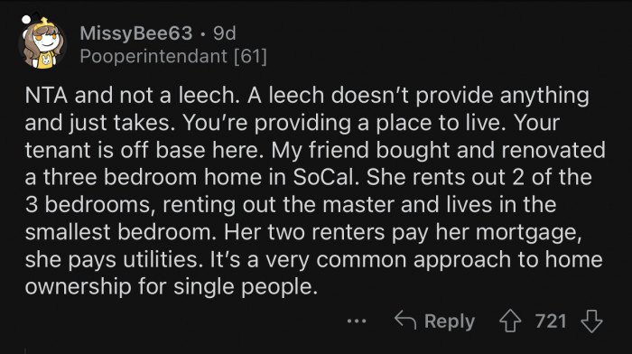 A Redditor who goes by the username u/Miserable-Hat-6390 made a post on the r/AmItheA**hole subreddit, where they shared how their roommate, who also happens to be their tenant, called them a leech for renting out the guest room. Scroll down to check out the full Reddit post!