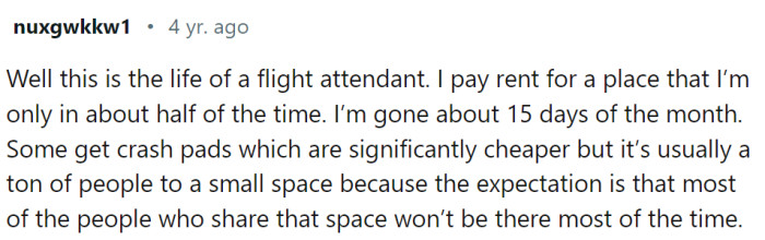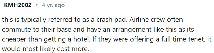 Given the advantages it offers to everyone involved, it may not be long before we see more postings of this nature. So, for flight attendants based in Boston or people with similar needs for a part-time residence, this peculiar Reddit post might be pointing the way to the housing of the future.
