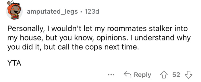 What's your take on this situation? Do you think the OP was wrong for allowing her roommate's ex into the apartment, or was she doing the right thing by looking out for her safety?