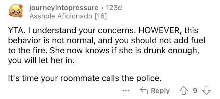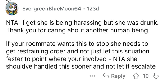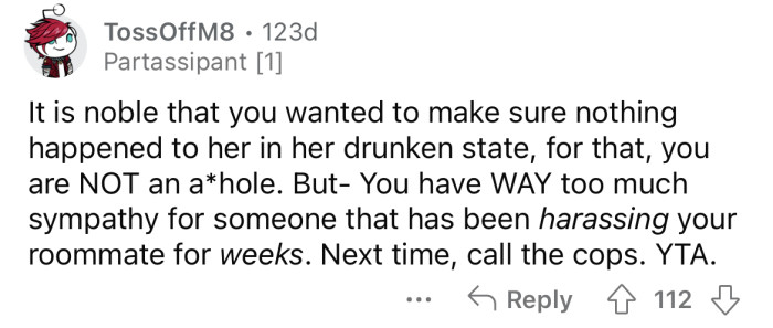 The OP asked if she is an a**hole for letting her roommate's ex inside their apartment because she was drunk.