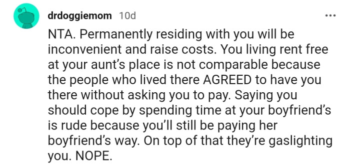 The Reddit community completely understood OP’s stance and ruled her out as the AH. On the other hand, they believe OP’s roommate and her boyfriend are only trying to freeload.