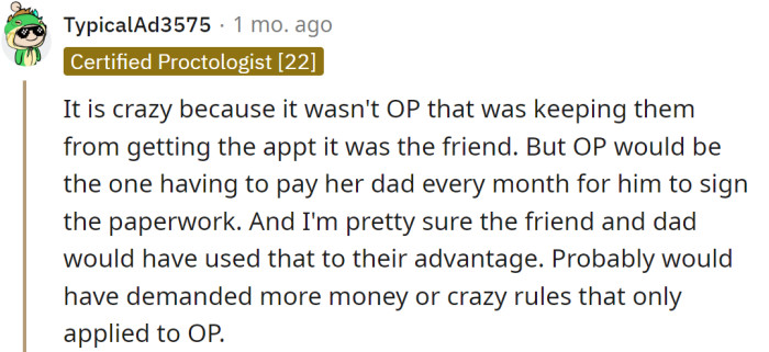 RedditBut things got weird when the girl's father asked the OP to pay him $100 per month: